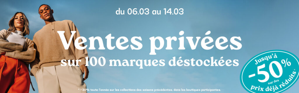 ⇒ Vous recevrez votre invitation dans un délai de 1h et pourrez donc profiter des Ventes Privées qui auront lieu du vendredi 6 mars 2026 au samedi 14 mars 2026.